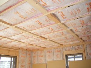 壁・天井に断熱材を敷き詰めます。