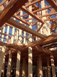 太い柱で、構造躯体をしっかりと組み上げていきます。