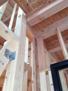 柱や筋交い、耐震金物をしっかり組んでいきます。\(^o^)/