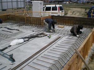 ベタ基礎の鉄筋組作業を