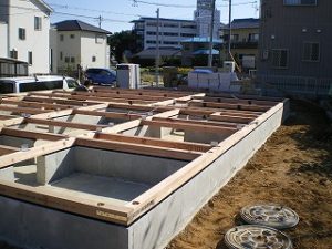 基礎の上に土台パッキン(換気の為)を設置し、土台を 据えました。次回いよいよ建て方工事です!