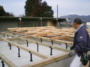 建て方前の土台据えと胴組工事の様子です。(その2)